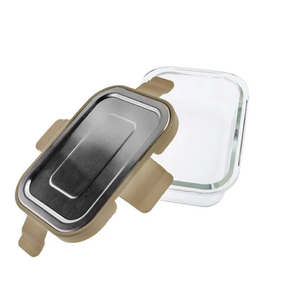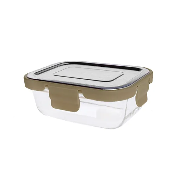 El envase para alimentos con cierre hermético tiene dimensiones de 15,7×11,8×5,8 cm y una capacidad de 370 ml. La tapa es de color verde y está fabricada con un 80% de cristal de borosilicato, un 10% de acero inoxidable y un 10% de polipropileno (PP). Este envase ofrece un diseño hermético para preservar la frescura de los alimentos. Con materiales duraderos como el cristal de borosilicato y el acero inoxidable, es una opción segura y funcional para almacenar alimentos en la cocina.