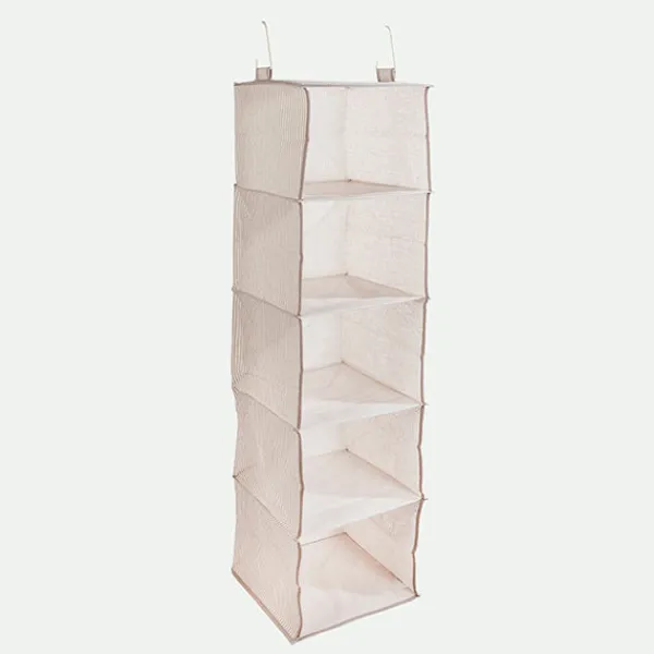 Mantén tu hogar ordenado y elegante con este práctico organizador de almacenaje de 5 compartimentos. Con unas medidas de 30x30x108 cm, es ideal para aprovechar al máximo el espacio vertical en armarios, vestidores o cualquier rincón de la casa. Fabricado en una combinación de poliéster, algodón y metal, aportando un toque natural y garantizando resistencia y durabilidad.