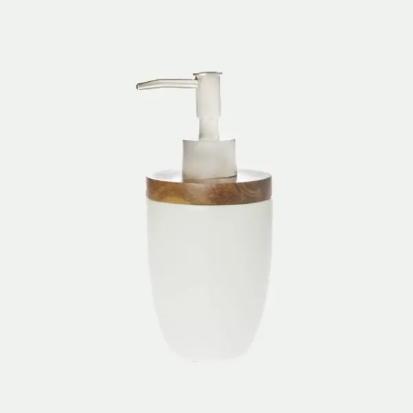 El dispensador de jabón tiene unas dimensiones de 8×17,5 centímetros y está fabricado con una combinación de materiales de alta calidad, incluyendo gres, ABS y madera de acacia. Esta mezcla de materiales proporciona durabilidad, resistencia y un aspecto estético atractivo. Con un diseño elegante y funcional, este dispensador es ideal para usar en el baño o la cocina, agregando un toque de estilo a tu espacio mientras proporciona una forma conveniente de dispensar jabón.