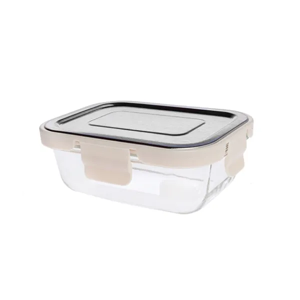 El envase para alimentos con cierre hermético tiene dimensiones de 15,7×11,8×5,8 cm y una capacidad de 370 ml. Está compuesto principalmente por un 80% de cristal de borosilicato, un 10% de acero inoxidable y un 10% de polipropileno (PP). Este tipo de envase proporciona un sellado hermético para mantener la frescura de los alimentos. El cristal de borosilicato es conocido por su resistencia al calor y a las temperaturas extremas. La combinación de acero inoxidable y PP contribuye a la durabilidad y funcionalidad del envase, haciéndolo adecuado para el almacenamiento de alimentos.