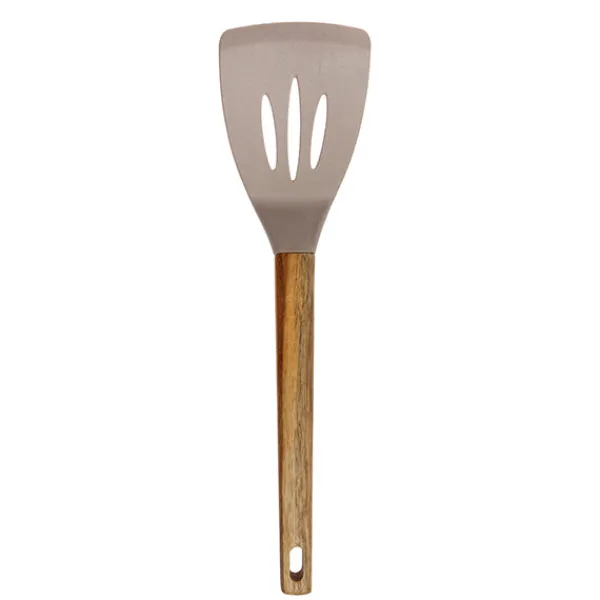 Facilita tus labores culinarias con esta espátula de 31×7,8 cm. Fabricada en un 50% de PBT para mayor resistencia y un 50% de madera de acacia para un toque natural y elegante. Perfecta para voltear y servir alimentos, ofreciendo durabilidad y estilo en tu cocina. Una herramienta imprescindible para cocinar con comodidad y sofisticación.