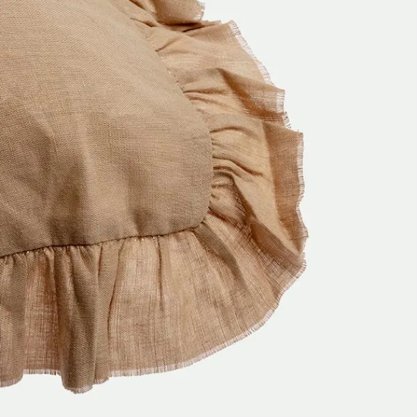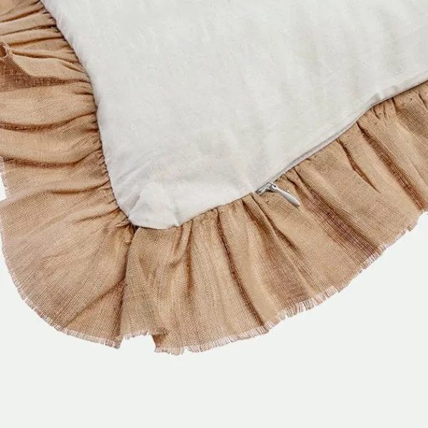 Renueva el estilo de tu hogar con nuestra encantadora funda de cojín con volantes. Confeccionada con una mezcla de algodón y lino, esta funda no solo añade un toque de elegancia, sino también comodidad y calidez a tu espacio. Diseñada en tono beige, esta funda de cojín con volantes es el complemento ideal para cualquier estilo de decoración.